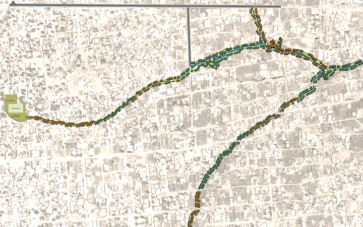 Sendo zonas mais planas, as grandes densidades e a oportunidade de rega assegura a estabilização dos limites/coroamento da Ravina. Tendo-se consciência que se torna necessário relacionar positivamente a população com a Ravina foram tomadas medidas nesse sentido introduzindo-se espécies ornamentais de flor e de fruto tornando o espaço aprazível (a Ravina como um Espaço Verde no Musseque), instalação de painéis formativos/informativos e implantação de pontes pedonais e rodoviárias que asseguram atravessamentos e organizam o sistema de circulação dentro do Musseque.