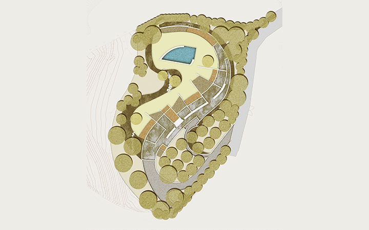 Situado numa encosta e com vistas privilegiadas, o terreno apresenta solos muito argilosos, excesso de água durante o inverno e recebe a influência do ar do mar. Estes aspetos foram condicionadores da seleção do material vegetal e da organização formal do espaço.