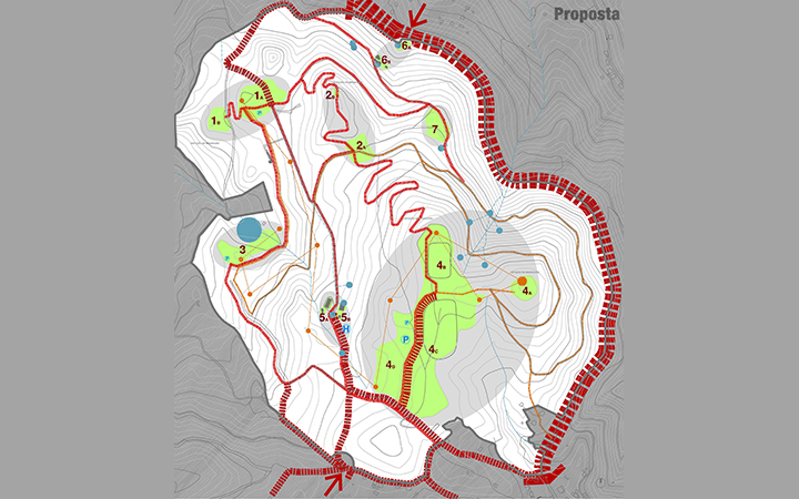Após se ter obtido o macrozonamento referente às aptidões e vocações do solo para o recreio e conservação e definido um programa compatível com as aptidões do território, características socioeconómicas da região, premissas indicadas no início do estudo e expectativas a curto médio prazo, tornou-se possível desenhar uma proposta. |