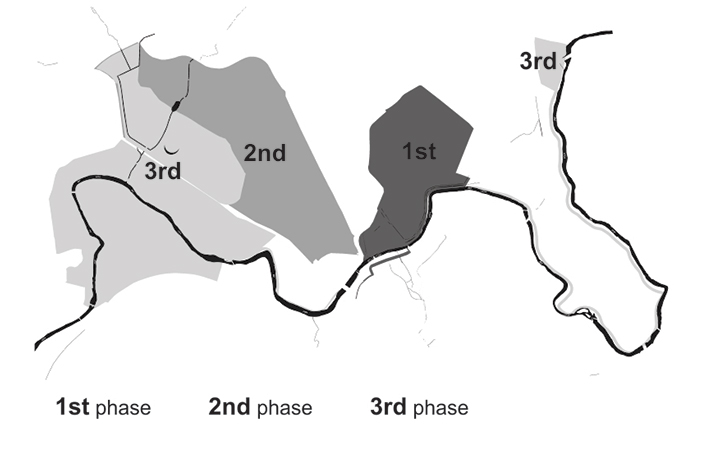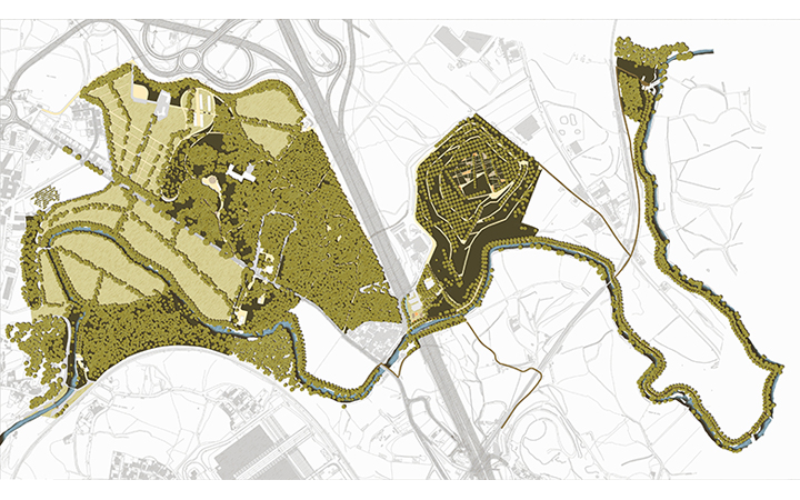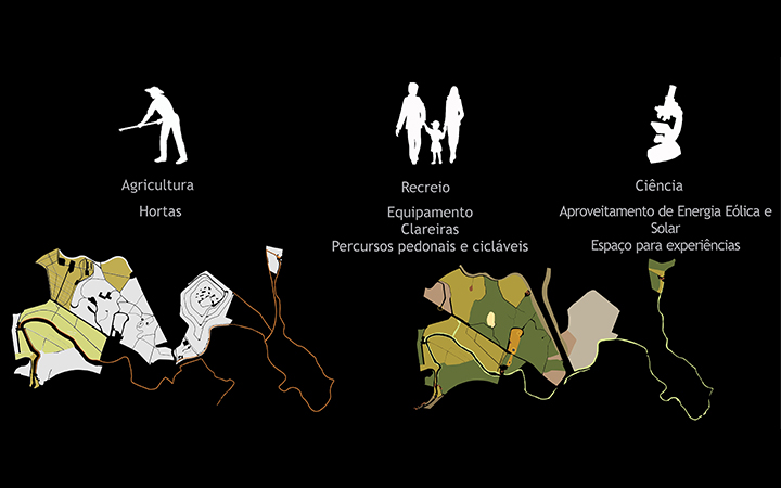 O projeto que se apresenta foi estruturado em três fases de ação: A fase 1 consistiu na recuperação do aterro sanitário e encontra-se concluída e construída; A fase 2 está no inicio de pormenorização/construção e inclui a implantação do Viveiro Municipal e ações de recuperação das Matas com base em princípios de “landscape management” tendo por objetivo criar diferentes tipologias de Matas desenvolvendo-se complementarmente espaços para equitação, escalada, circuitos de bicicleta em montanha e percursos pedestres. A fase 3 compreende os campos situados ao longo do Rio Leça, correspondendo a espaços destinados à agricultura. A proposta consiste essencialmente em transformar alguns tipos de agricultura, instalar hortas e implantar uma ciclovia ao longo do rio e percursos equestres e pedestres. |